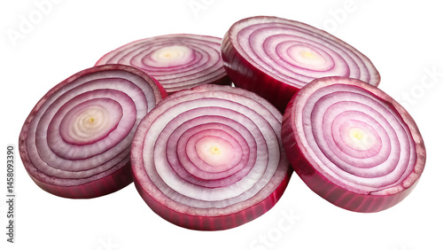 red onion slices isolated on white background