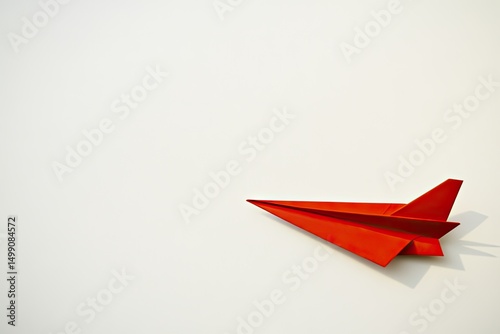 Red origami airplane on plain white background