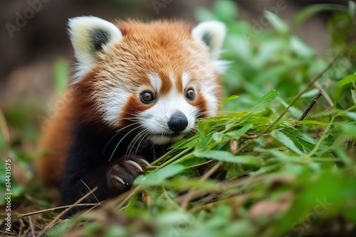 Red Panda Eating Bamboo, animal portrait (Ai generated)