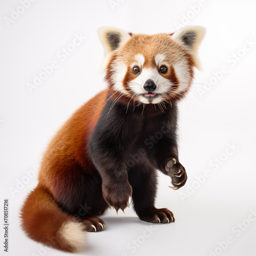 Red panda stands up and is surprised