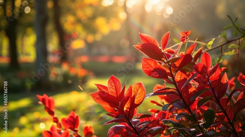 Red plant in the park with a lovely backdrop