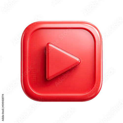 Red Play Button Shiny Square Icon Media Player,