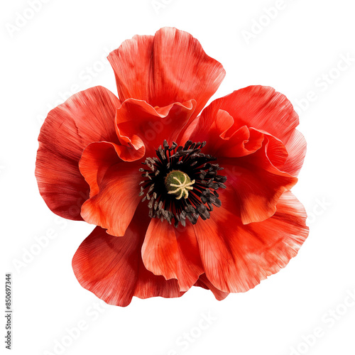 Red poppy flower isolated on white background