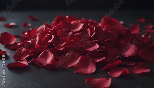 Red rose petals bunch on dark background, macro close-up, for weddings or valentines day