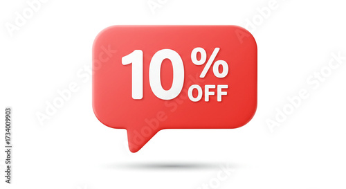 Red speech bubble with 10 percent off isolated on white background