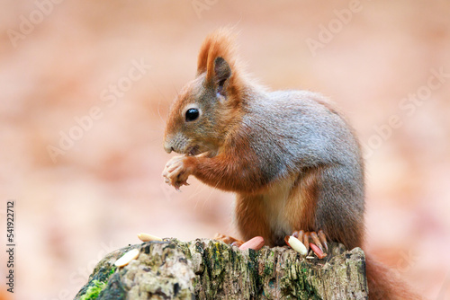 red squirrel, Sciurus vulgaris, Autumn, nut and dry leaves