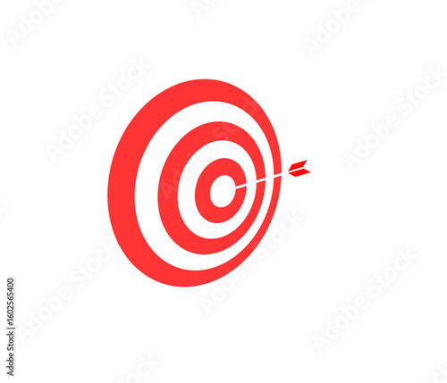Red target with two arrows, one hitting the bullseye and one on the floor, against a black background. Success and failure concept