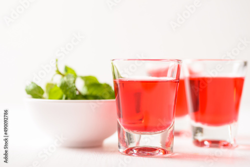 Red tequila with lime and mint on white background, Tropical spring and summer vacation concept