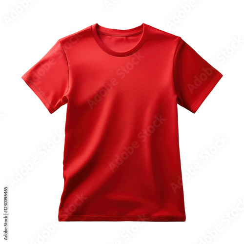 Red t-shirt, flattering fit, isolated on white background.