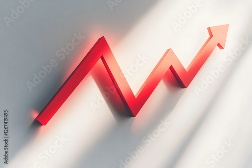 Red upward arrow graph showing rising trend, cut out on white