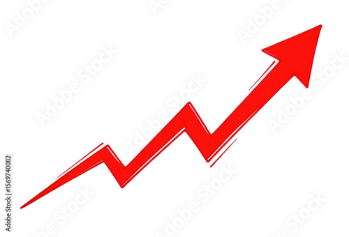 Red upward trending arrow indicating growth on isolated transparent background, cutout png