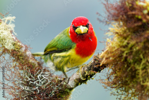 Red-headed Barbet - Eubucco bourcierii colorful bird in the family Capitonidae, found in humid highland forest in Costa Rica and Panama, Andes in western Venezuela, Colombia, Ecuador and Peru