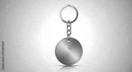 Reflective Blank Silver Circular Keychain Mockup with Ring and Chain.