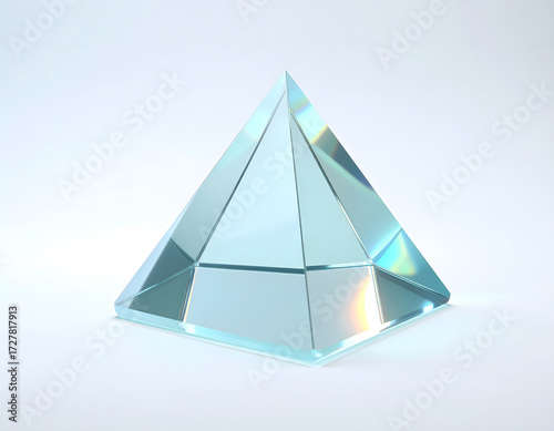 Reflective Glass Pyramid with Soft Lighting on White Background