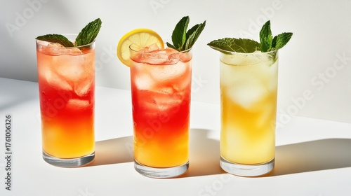 Refreshing beverages with lemonade and mint leaves closeup