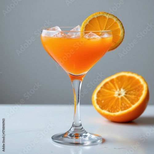 Refreshing Citrus Cocktail with Orange Slice and Ice Cubes