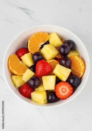 Refreshing Fruit Salad Strawberries Pineapple Mandarin Oranges Grapes in Bowl