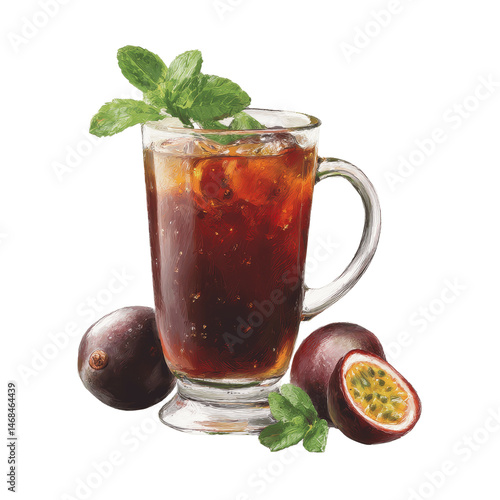 Refreshing Iced Passion Fruit Tea with Mint Garnish