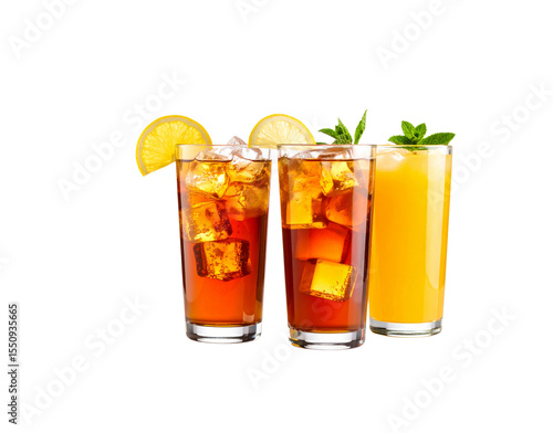 Refreshing Iced Tea and Orange Juice Drinks with Lemon and Mint.