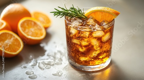 Refreshing Iced Tea Cocktail with Orange and Rosemary Garnish