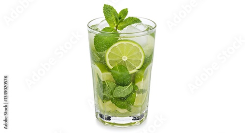 Refreshing Mojito Cocktail with Lime and Mint Isolated on White
