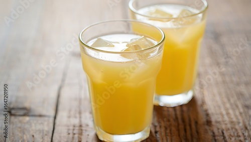 Refreshing Orange Juice with Ice Cubes on Wooden Table Perfect for Summer and Healthy Lifestyle Advertising Campaigns