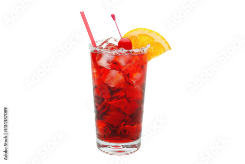 Refreshing summer cocktail garnished with cherry and orange slice in a crystal-clear glass isolated on transparent background