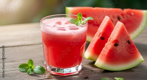 Refreshing Watermelon Juice with Fresh Slices and Mint.