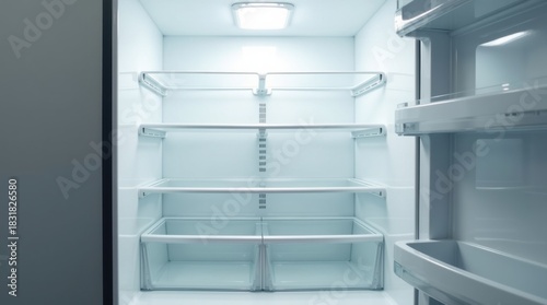 Refrigerador vacío con las puertas abiertas