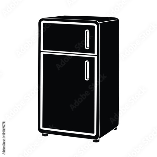 Refrigerator Two Doors And Handles Outline Vector Illustration