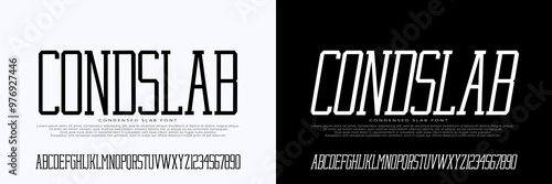Reguler Condensed Slab Font, Alphabet Modern style for, Technology,Fashion,Urban,Brand, Movie. Typeface,Uppercase and Number. Vector illustration