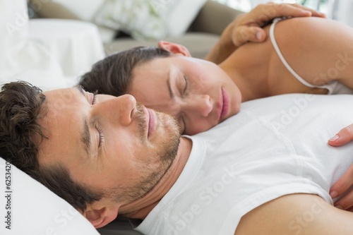 Relaxed couple sleeping together in bed