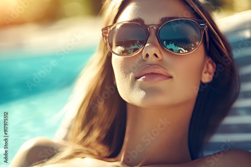Relaxed Woman Sunbathing by the Pool on a Sunny Day, perfect for summer vacation or relaxation concept Generative AI