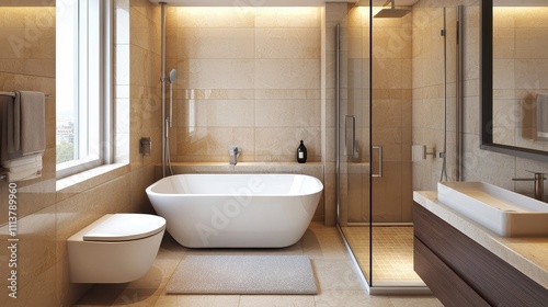 Relaxing bathing experience in modern bathroom home interior high-quality design bright atmosphere aesthetic view comfort concept
