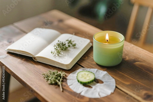 Relaxing Spa Moment with Face Mask, Cucumber, Candle and Herbal Tea