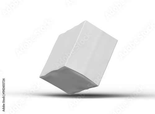 Rendered image of a small white rectangular dented box on a transparent background