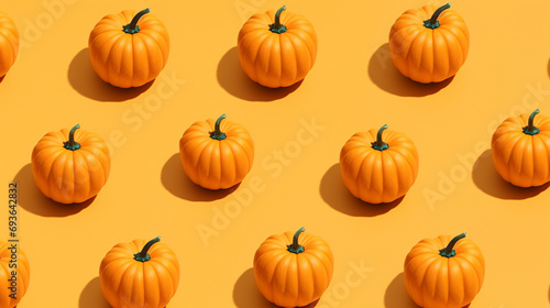 Repeating pattern of pumpkins on an yellow background