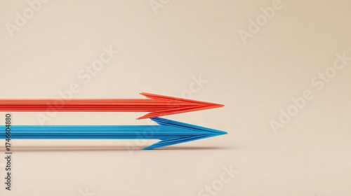 reprisal. A sharp red arrow deflecting a blue arrow on a neutral background. event key visuals, club posters, designed for fitness apps and gym onboarding.