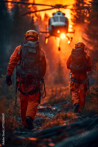Rescue helicopter in the mountains. Rescue team. Rescue helicopter.
