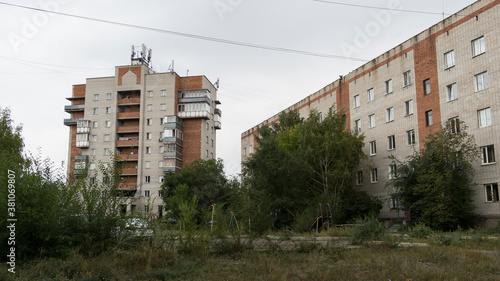 Residential area. Brick buildings. Modern architecture. Ust-Kamenogorsk (Kazakhstan)