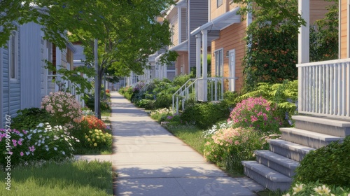 Residential street with landscaping