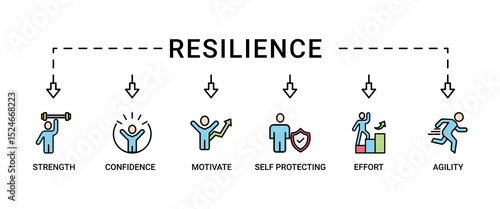 Resilience banner web icon set vector illustration concept for successfully cope with a crisis with an icon of the strength, confidence, motivate, self protecting, effort, change and agility icons