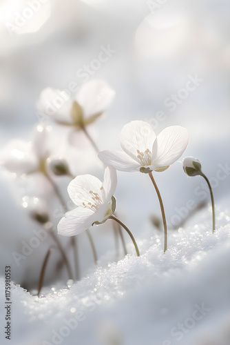 Resilient Blooms: Tiny Flowers Braving the Snowy Winter Meadow