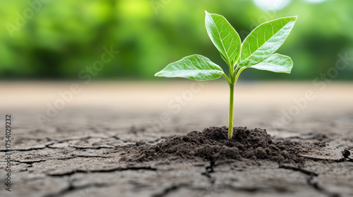 Resilient seedling emerges from cracked earth, symbolizing hope and renewal in nature
