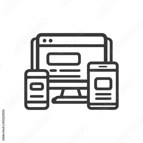 Responsive Design Icon: Desktop, Mobile Phones, Website Outline