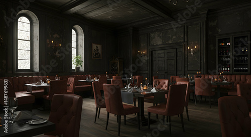 restaurant, interior, design, Luxurious Dark Restaurant Interior Design