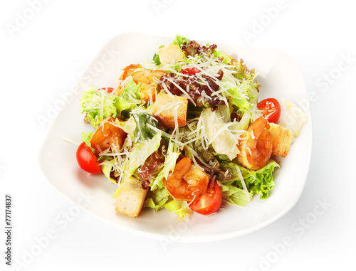 Restaurant food isolated - caesar salad with shrimps