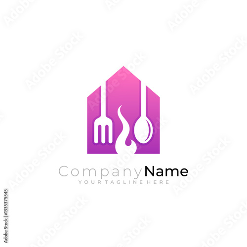Restaurant logo with simple design vector, house and cutlery logos