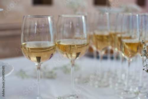 Restaurant. The wine in glasses.
