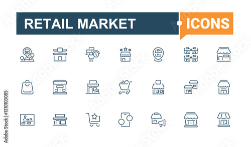 Retail Market linear icon collection. Pack of commerce, retail, store, market, discount, customer, basket, app, business. Thin outline icons pack. Minimalistic icon collections.